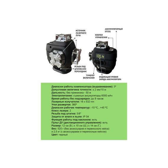 Лазерный уровень LT L16-360М проф + штатив 3.6м + тренога 1.5м усиленная L16-360M/3.6м/1.5м-УС