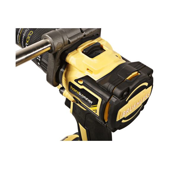 Аккумуляторная ударная дрель-шуруповерт Hanskonner подходит для любых работ, в том числе в стесненных условиях и труднодоступных местах без снижения производительности и потери качества работ. Мощный крутящий момент 165 Н·м позволяет использовать инструмент в 5 полноценных функциях: шуруповерт, ударная дрель, низкооборотистая дрель, ледобур, миксер. Компактный и легкий бесщеточный двигатель имеет выгодные параметры работы: