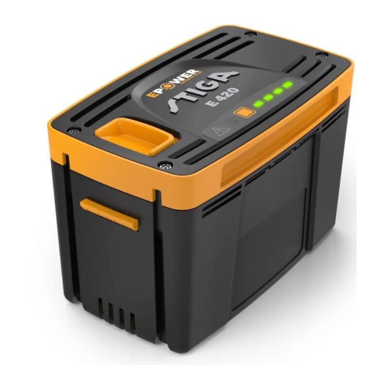Аккумулятор ePower STIGA E 420, совместимый с газонокосилками и другими изделиями STIGA серии 5 , а также ножницами для живой изгороди серии 7 и другими изделиями STIGA серии 9. Емкость 2 А·ч и напряжение 48 В.