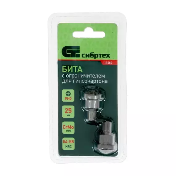 Бита Сибртех 11460 PH2x25мм с ограничителем для ГКЛ, 2ш., CrMo