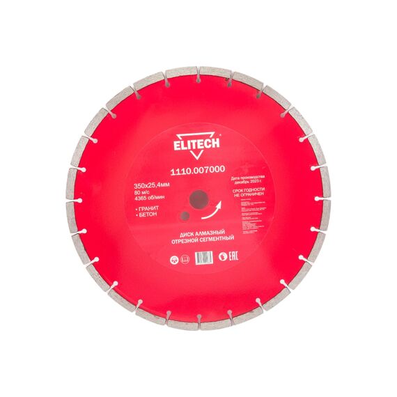 Технические характеристики сегментного алмазного диска по граниту, бетону Elitech 1110.007000