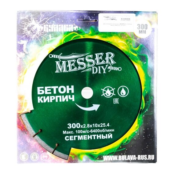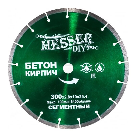 Диск алмазный сегментный по бетону, кирпичу MESSER 300D-2.8T-10W-25.4 (01.300.024)