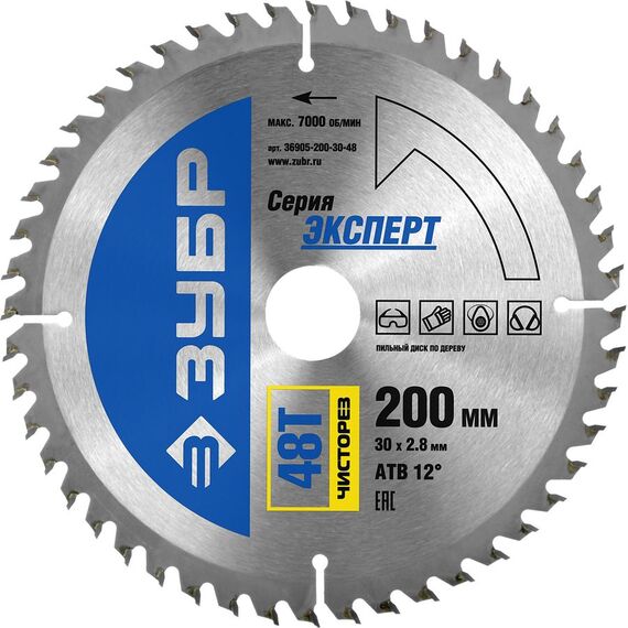 Пильный диск по дереву Зубр Чистый рез усиленный (36905-200-30-48) d200мм (цирк. пилы)