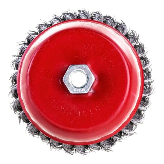 Кордщетка чашечная для УШМ (витая жесткая) 150 мм Профессионал 9633 – это многофункциональная сменная оснастка для болгарки. Прочная металлическая проволока, скрученная в несколько раз, обеспечивает оптимальную жёсткость щетины. Щётка используется для быстрого удаления ржавчины и заусенцев, а также шлифовки поверхностей из различных материалов.