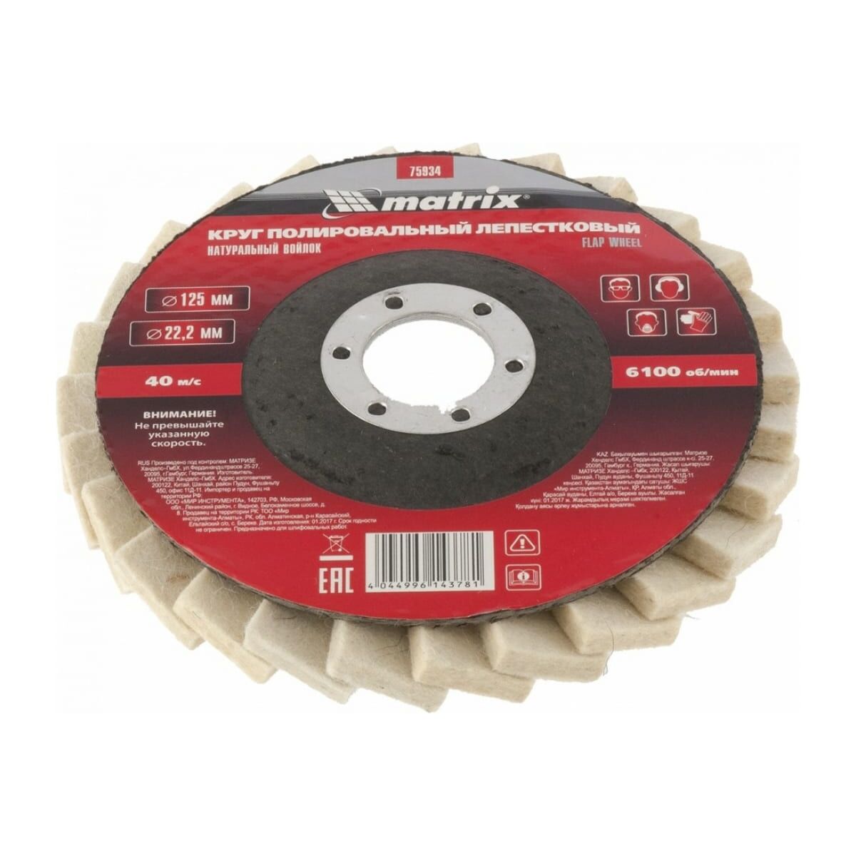 Круг полировальный MATRIX 75934 лепестковый из натурального войлока 125 х 22,2 мм
