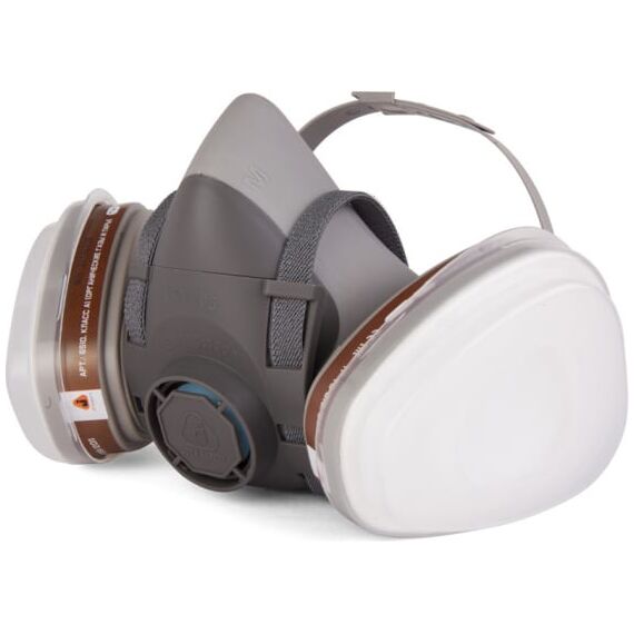 В комплекте: - 5500Р Полумаска промышленная (термопласт) - 1 шт; - 6510 Фильтры для защиты от органических газов и паров A1 - 2 шт; - 6020Р2R Предфильтр для защиты от пыли и аэрозолей P2 - 4 шт; - 5101 держатель для предфильтров - 2 шт; - перчатки нитриловые - 1 пара.