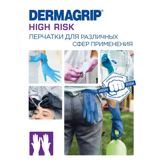 Перчатки смотровые Dermagrip High Risk CТ0000000688 латекс 50шт р.XL