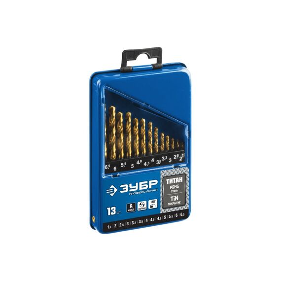 Набор сверл по металлу ЗУБР Титан 29615-H13_z01 сталь Р6М5, d-1.5-6.5 мм