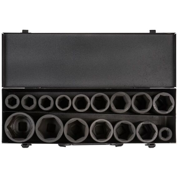Набор головок ударн. 3/4" 90мм 16пр. (17,19,21,22,24,27,30,32,33,34,35,36,38,41,46,50мм) мет. кейс AIRLINE ATAS045 Материал - сталь 42CrMo Твердость - 45-49 HRC Покрытие - фосфатирование Предназначены для работы с пневматическим и ручным инструментом.