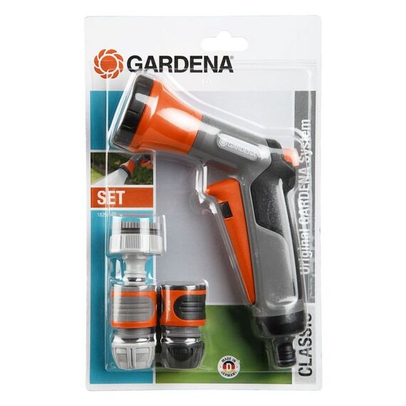 Описание Комплект для полива: пистолет-распылитель для полива, коннектор 13мм (1/2"), коннектор с автостопом 13мм (1/2"), штуцер для соединения с краном 26.5мм (G 3/4") и 33.3мм (G1").