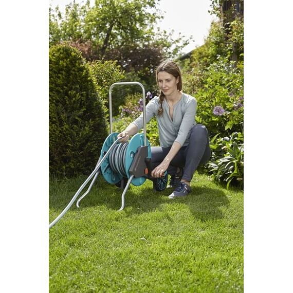 Обеспечивает компактное хранение садового шланга и удобство использования. Эргономичная ручка с компонентами из мягкого пластика надежно перематывает шланг. Инновационная морозостойкость. Емкость барабана со шлангом 60 m 13 mm (1/2"), 50 m 15 mm (5/8"), 35 m 19 mm (3/4").