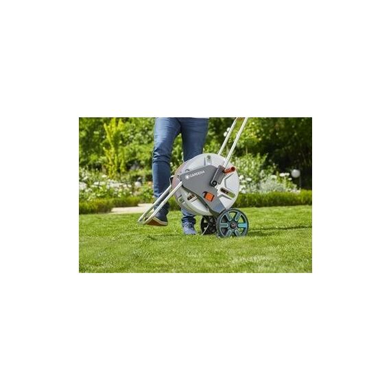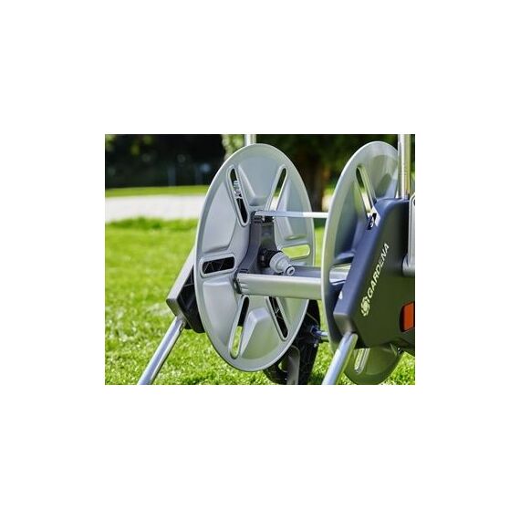 Тележка для шлангов металлическая AquaRoll M особенно прочна, и способна выдержать даже самые высокие нагрузки в саду. Это позволяет экономить место для хранения садового шланга. Емкость барабана со шлангом: 60 м 13 мм (1/2"), 50 м 15 мм (5/8"), 35 м 19 мм (3/4")