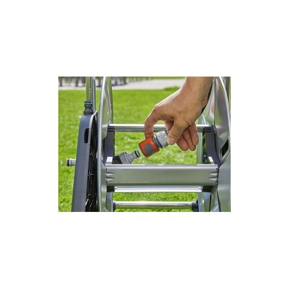 Тележка для шлангов металлическая AquaRoll M особенно прочна, и способна выдержать даже самые высокие нагрузки в саду. Это позволяет экономить место для хранения садового шланга. Емкость барабана со шлангом: 60 м 13 мм (1/2"), 50 м 15 мм (5/8"), 35 м 19 мм (3/4")