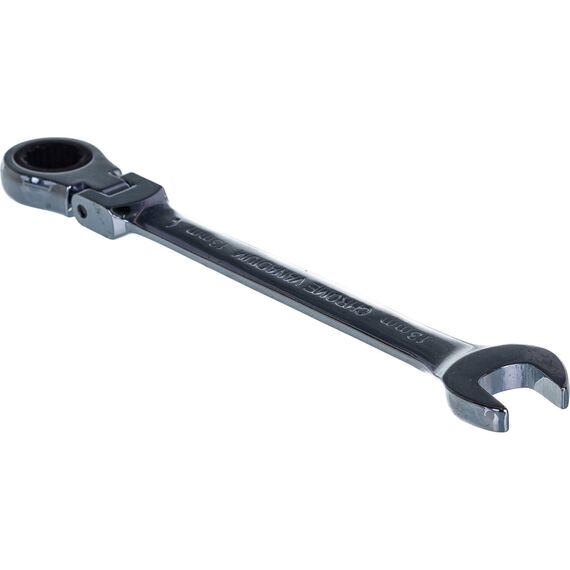 Комбинированный трещоточный ключ 13мм MATRIX PROFESSIONAL 14865 предназначен для монтажа и демонтажа болтовых соединений в труднодоступных местах. Корпус изготовлен из хромванадиевой стали с антикоррозийным покрытием, которое необходимо для защиты инструмента от воздействий внешней среды. Оснащен двумя головками: гаечной, размером 13 мм и накидной. Накидная головка расположена на шарнире, который меняет ее положение от 0 до 180°, и оснащена трещоткой, необходимой для быстрой и легкой работы в труднодоступных местах.