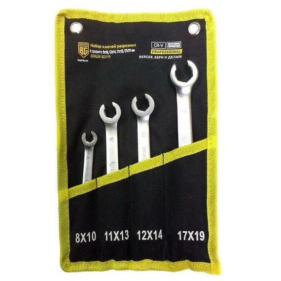 Набор ключей BERGER BG1119 разрезных 4 предмета в матерчатом чехле, 8-19 мм