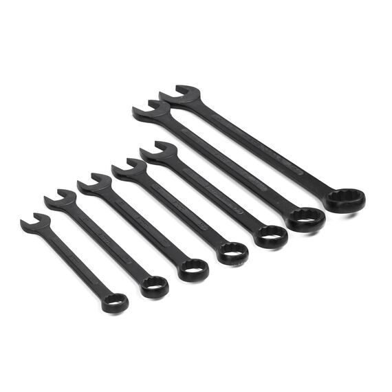 Набор гаечных комбинированных ключей выполнен из прочной стали, которая выдерживает значительное усилие.