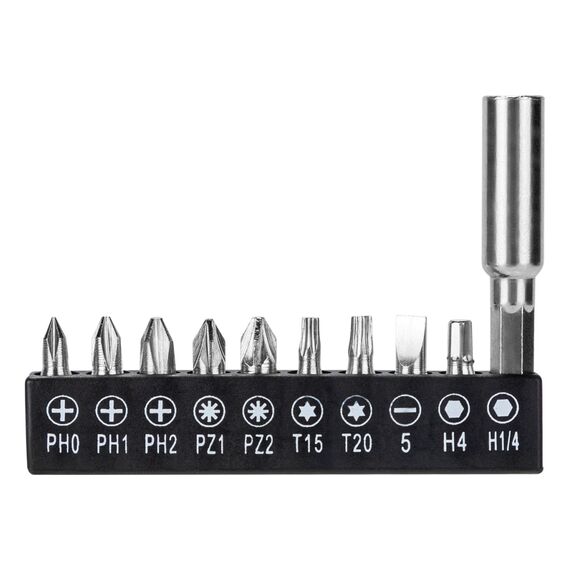 В комплект входят 9 бит, магнитный держатель-удлинитель и удобный пластиковый кейс для хранения и транспортировки