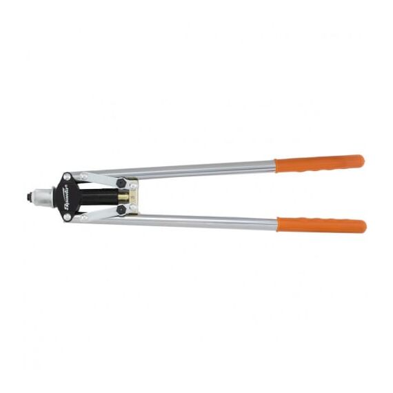 Усиленный двуручный заклепочник 600 мм SPARTA 405405 - надежный инструмент для соединения деталей или слоев материала. Используется с вытяжными заклепками. Эргономичные рукоятки обрезинены для надежного удержания инструмента. Благодаря регулируемой насадке в данный заклепочник можно устанавливать заклепки разных диаметров. Диаметр используемых заклёпок: 2.4, 3.2, 4.0, 4.8 мм.
