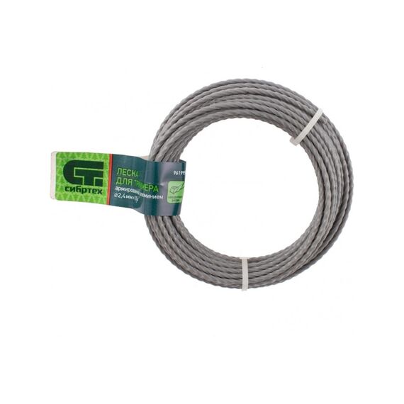 Леска для триммера СИБРТЕХ 961995 квадратная витая, армир. алюминием, 2,4ммх10м, Россия