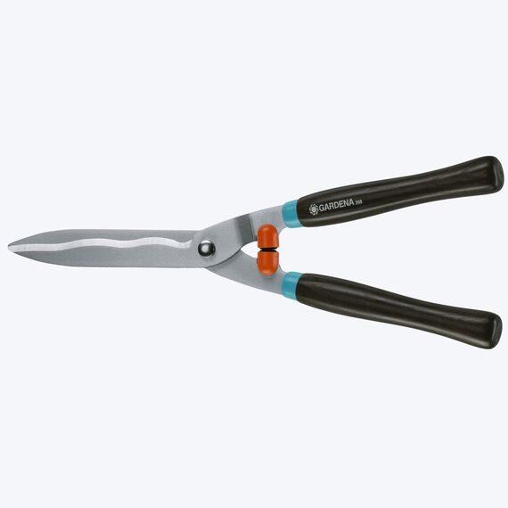 Описание Ножницы GARDENA с прочными, волнообразно заточенными лезвиями особенно хорошо подходят для гладкой и эффективной стрижки живой изгороди. Деревянные рукоятки эргономичной формы обеспечивают удобство в использовании.