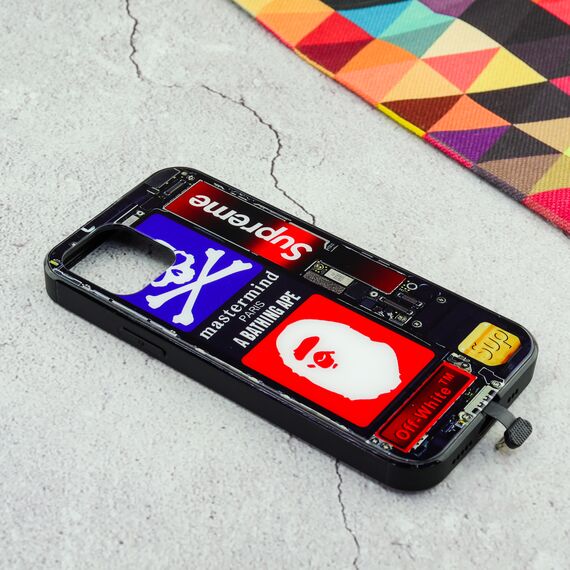 Чехол для iPhone 12 DANGER флуоресентный рисунок чёрный