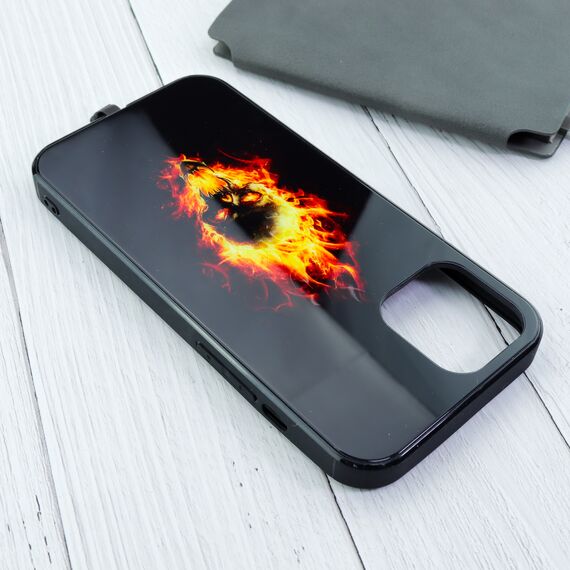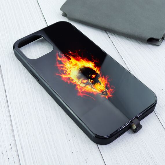 Чехол для iPhone 12 Pro Max Fire Skull (175) флуоресцентный рисунок чёрный