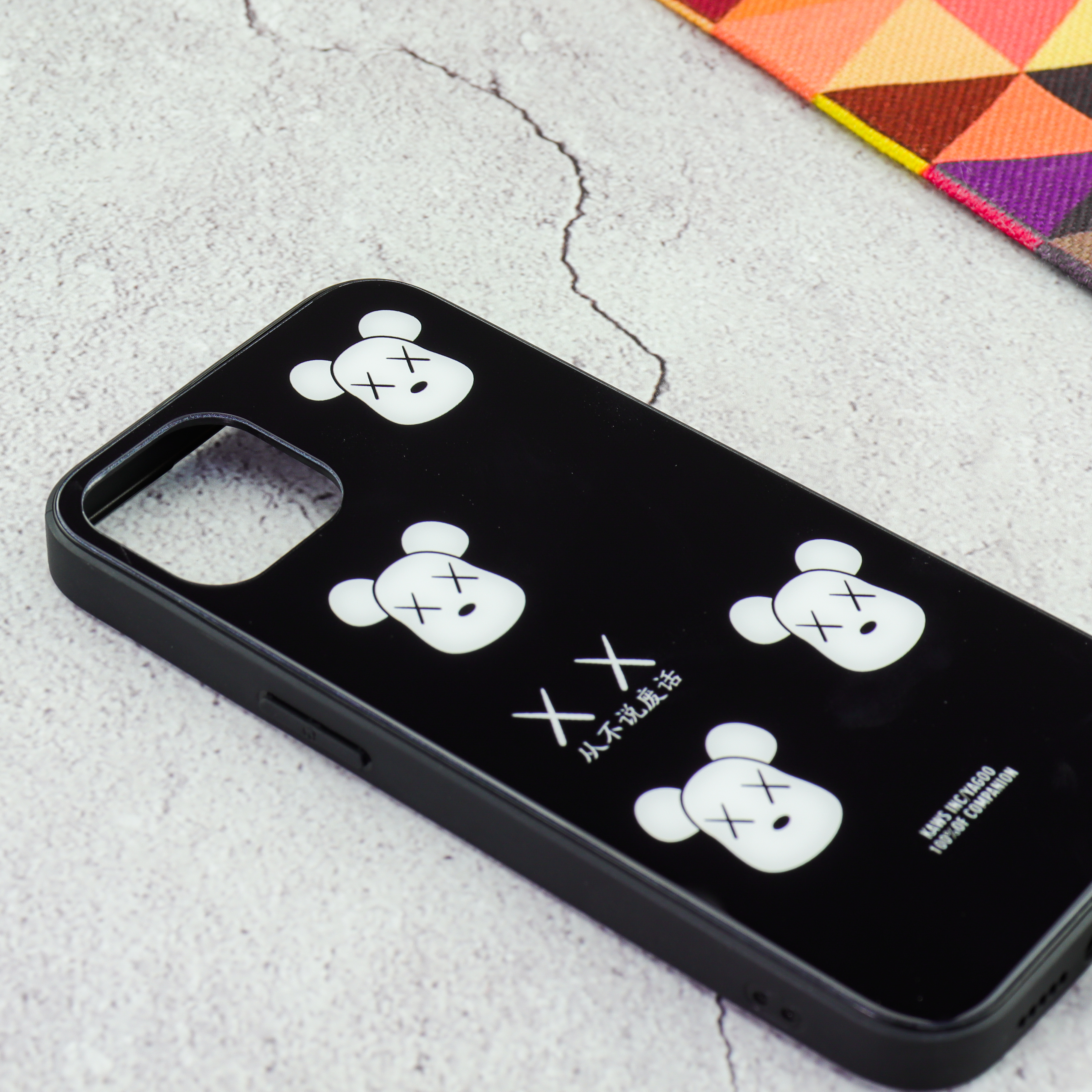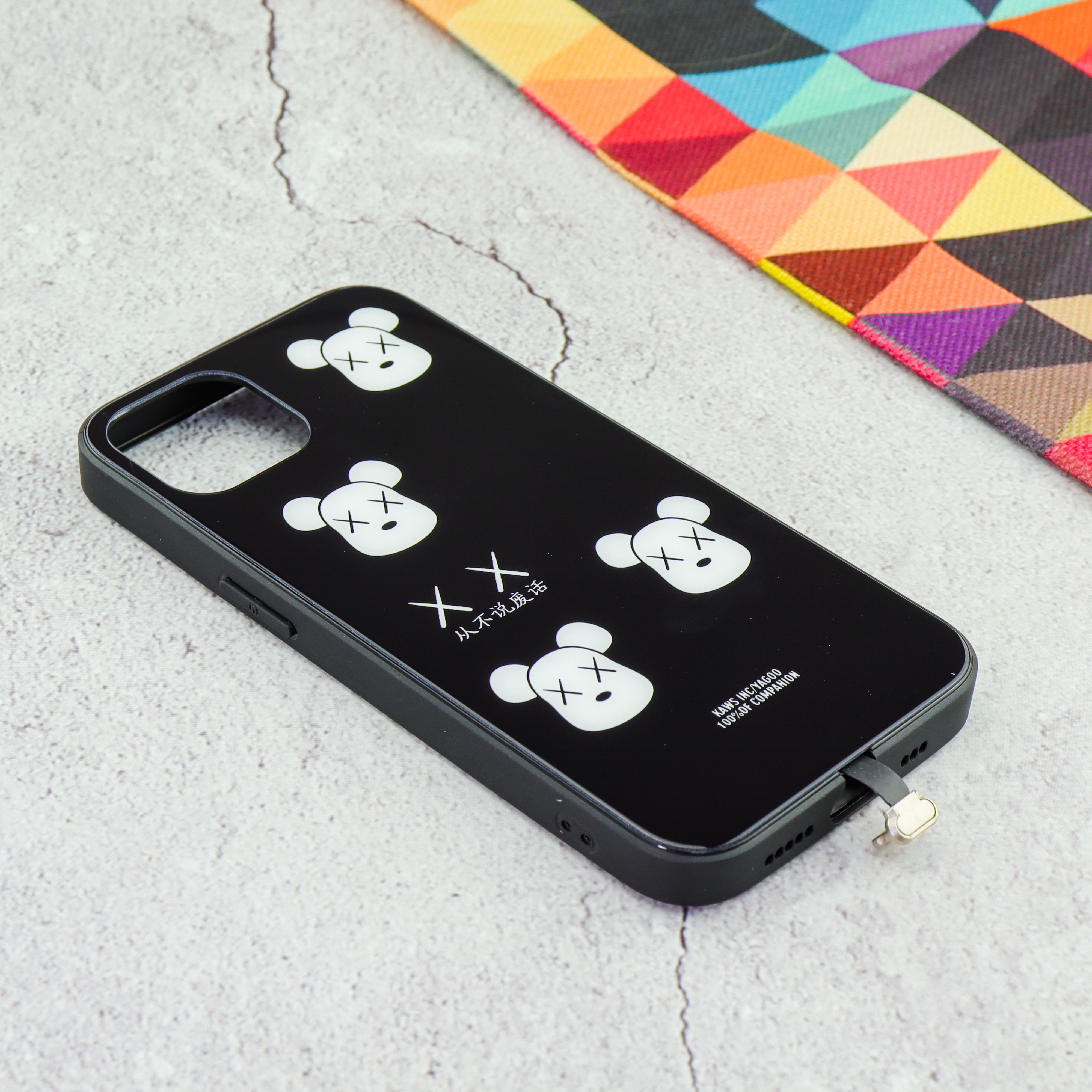 Чехол для iPhone 13 BEARBRICK XX флуоресентный рисунок чёрный