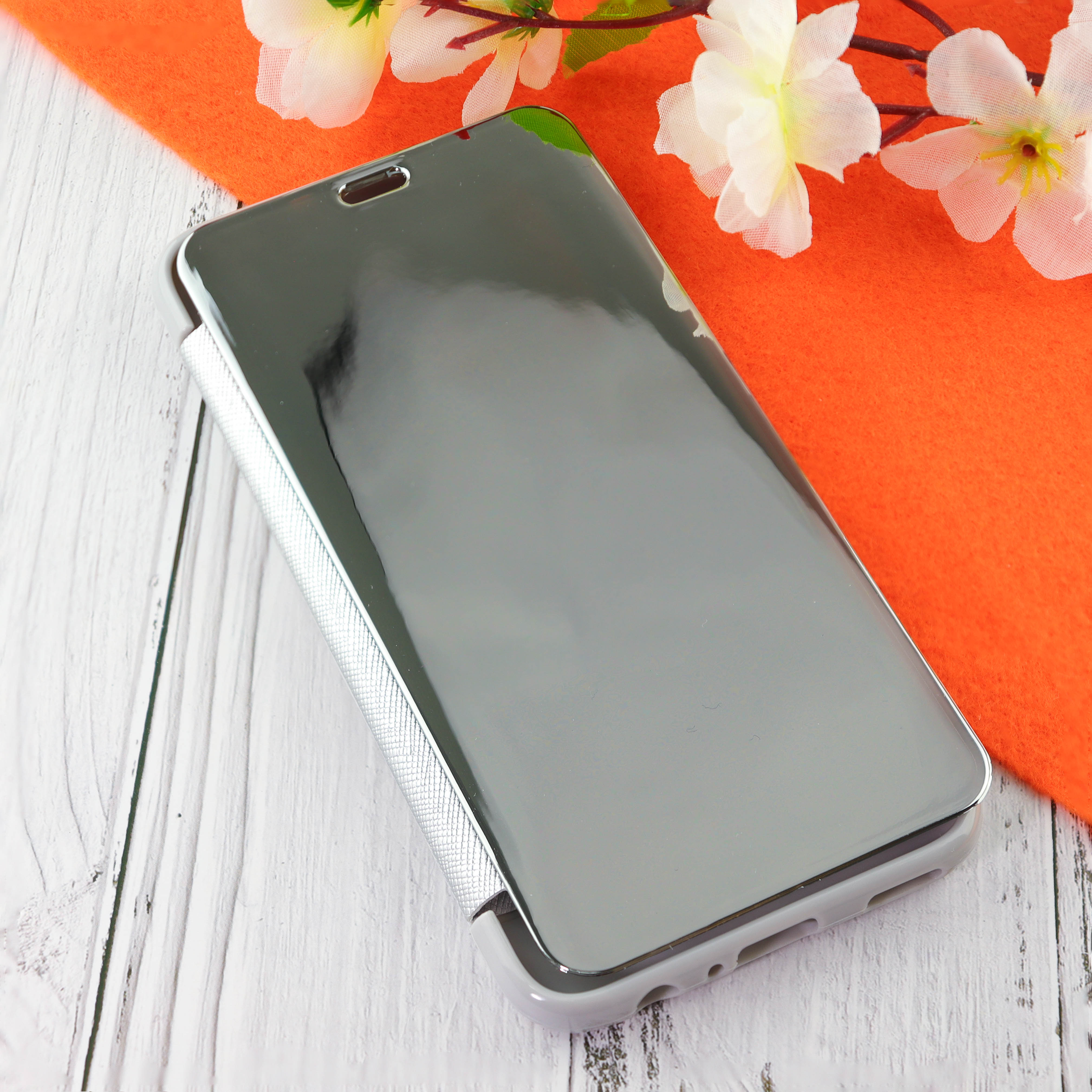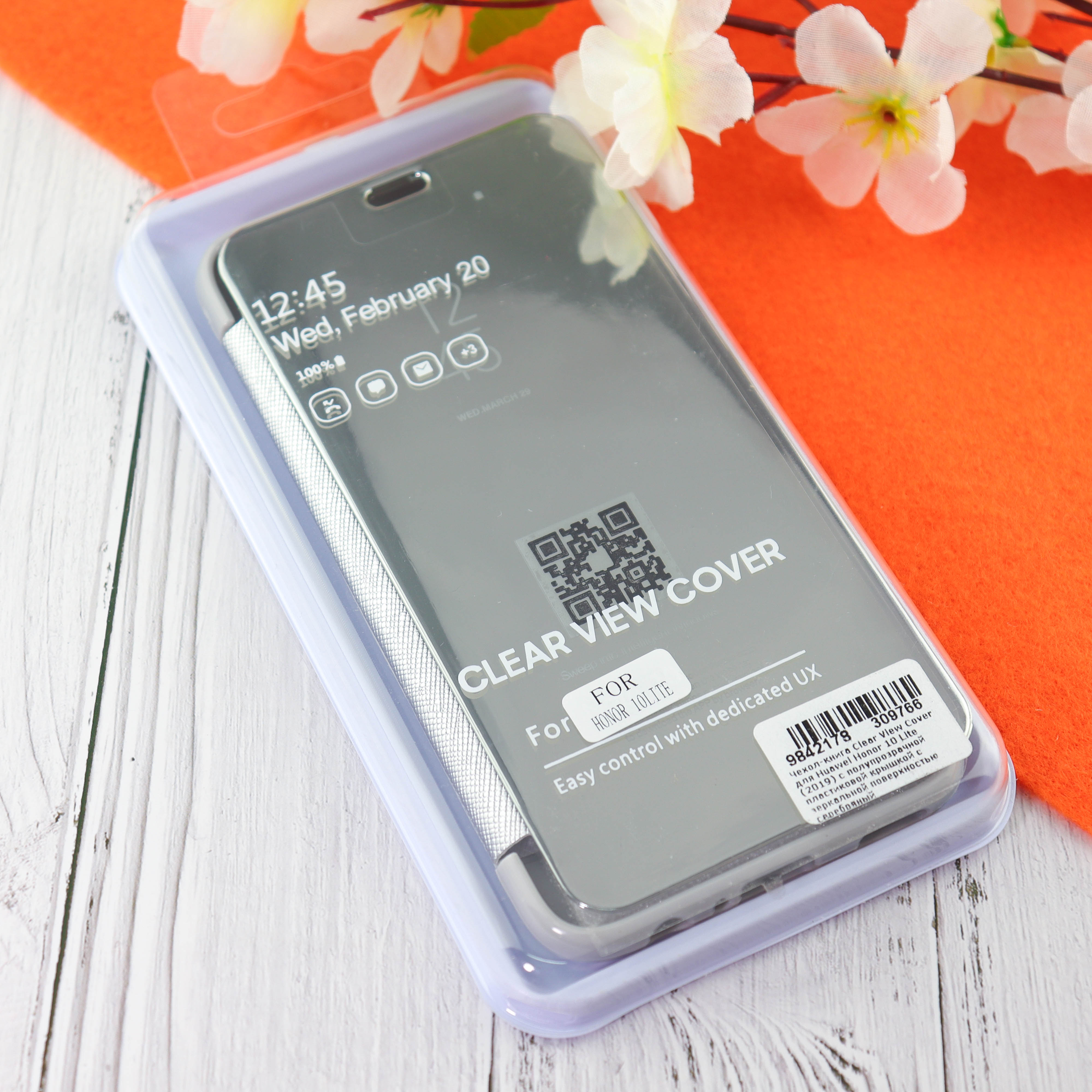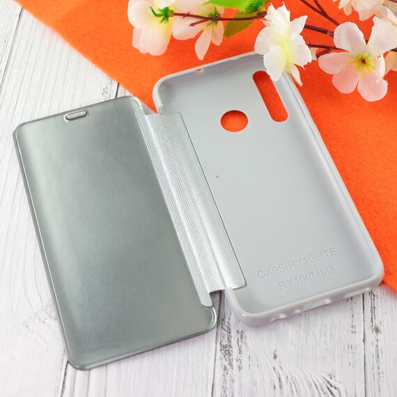 Чехол-книга Clear View Cover для Huawei Honor 10 Lite (2019) с полупрозрачной пластиковой крышкой с зеркальной поверхностью серебряный