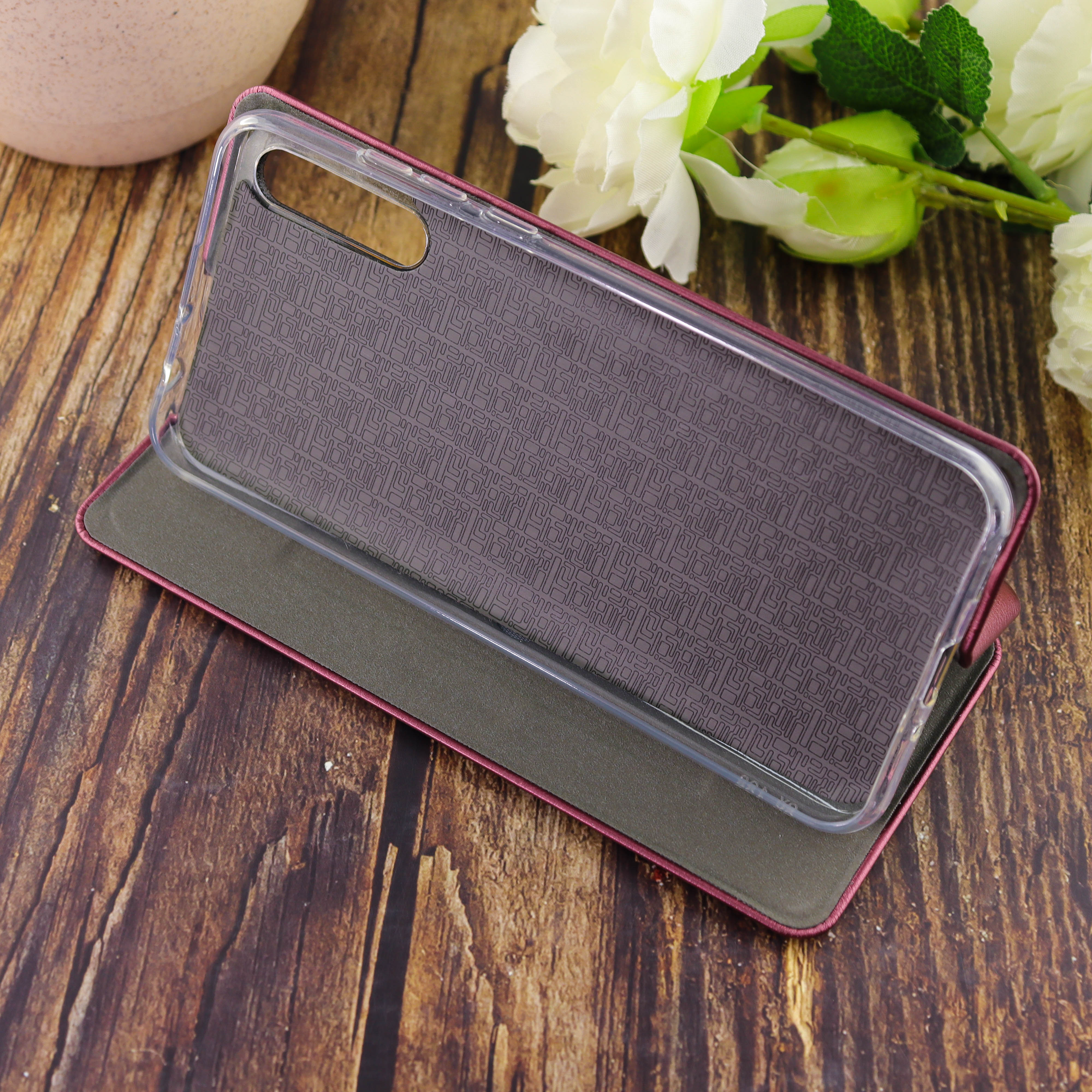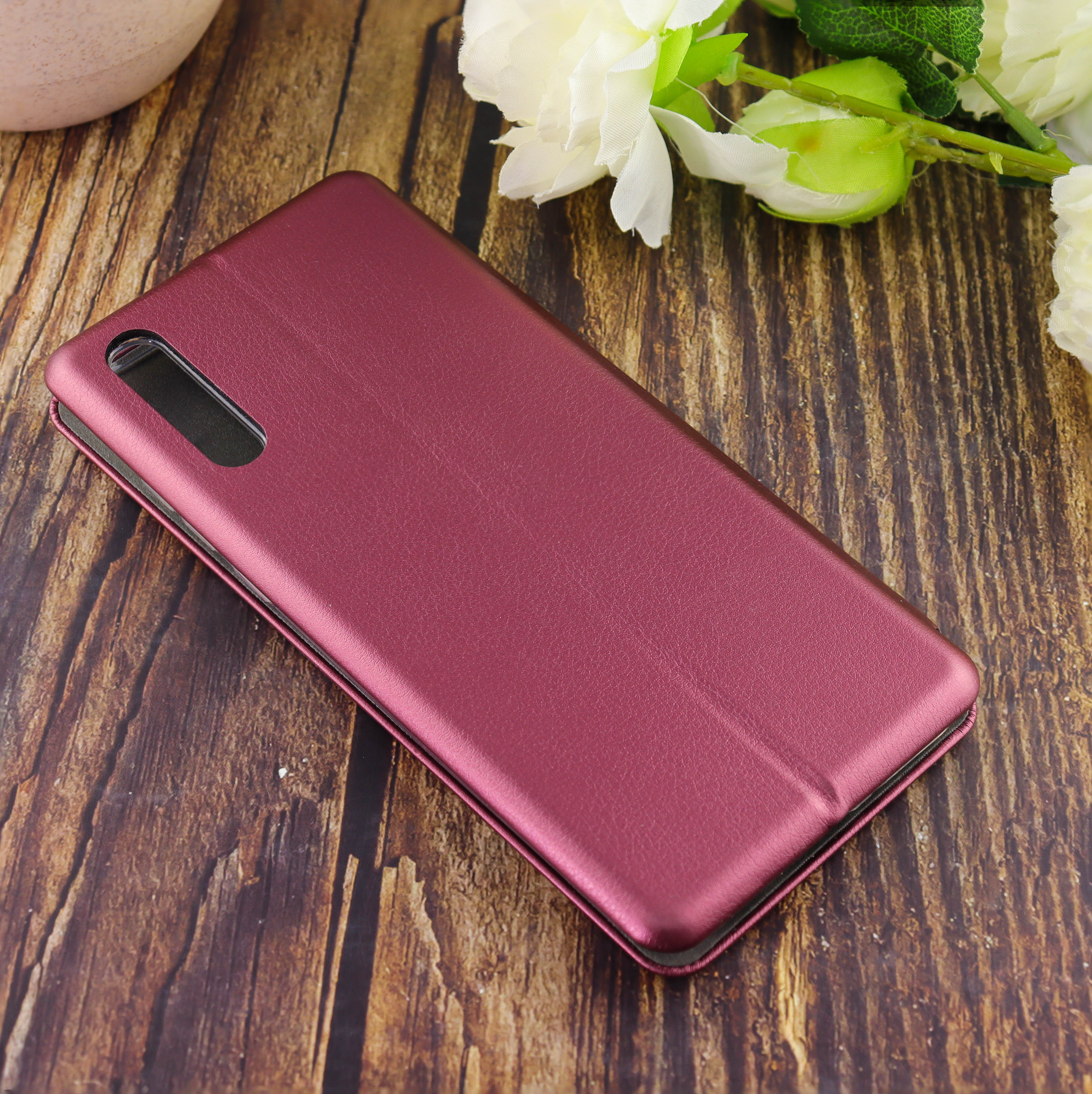 Чехол-книга для Huawei Y8p 2020/отдел под пластик.карту,силикон/бордовый