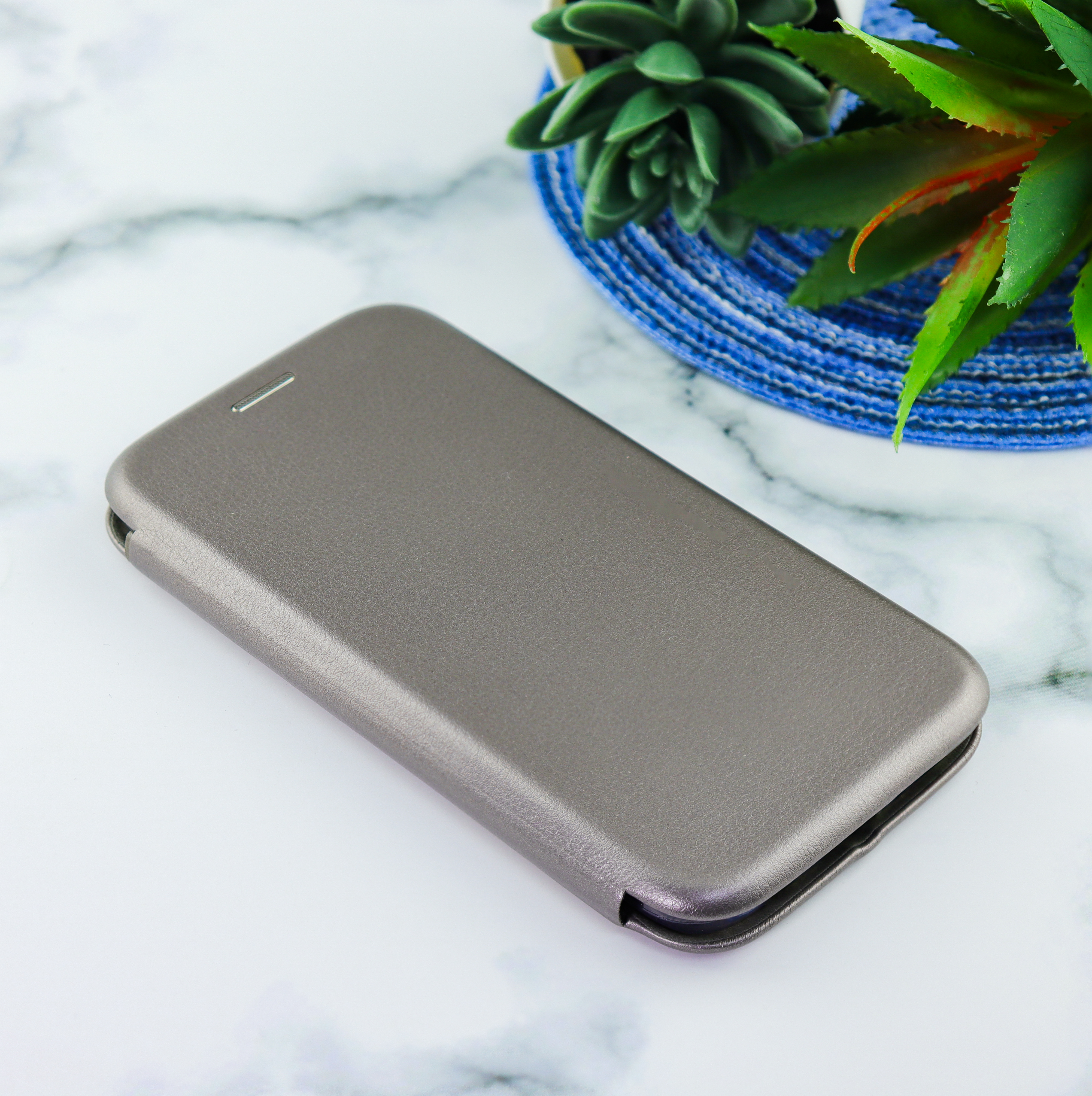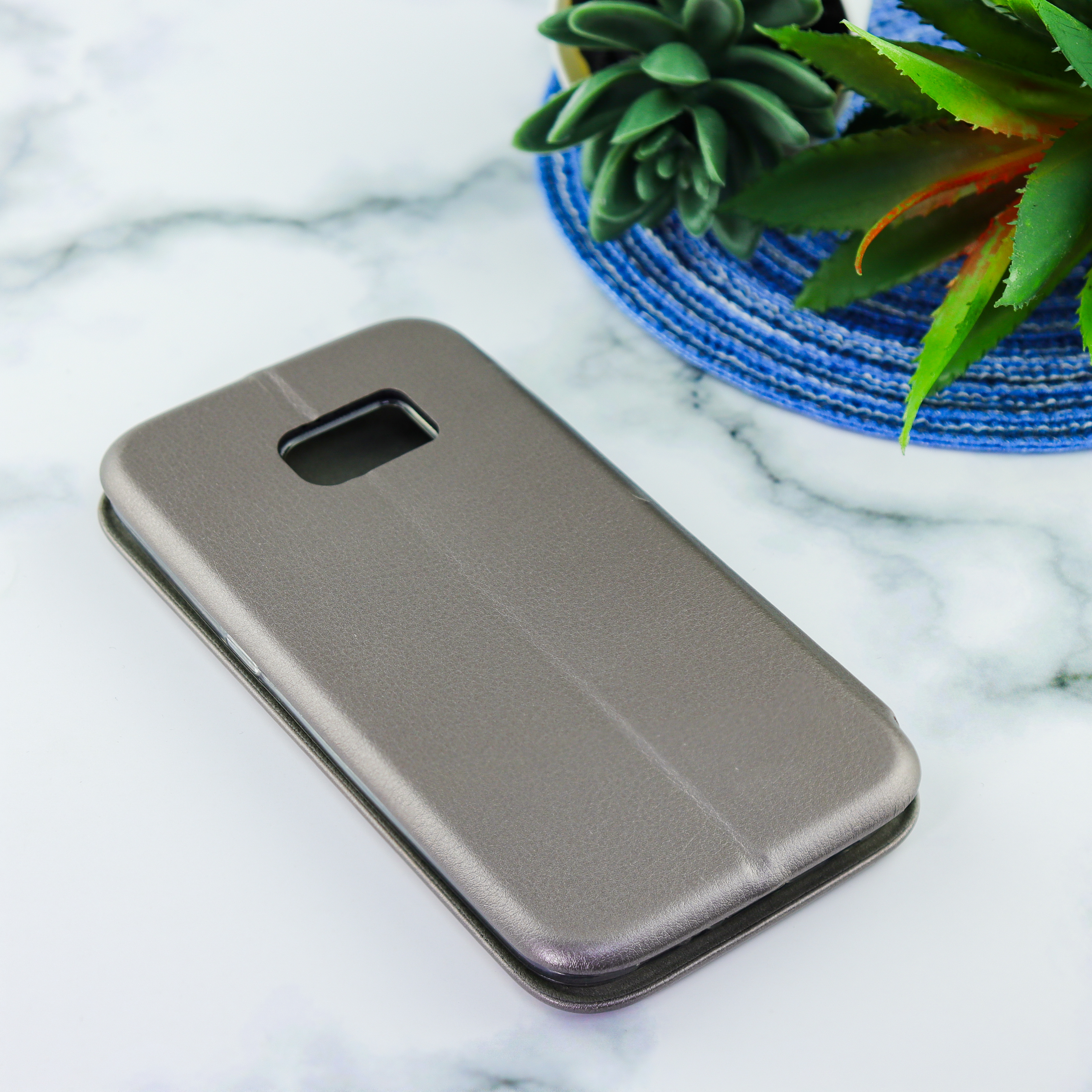 Чехол книга на силиконовой основе и магните для Samsung Galaxy S7 Book, с округленными краями, серебряный