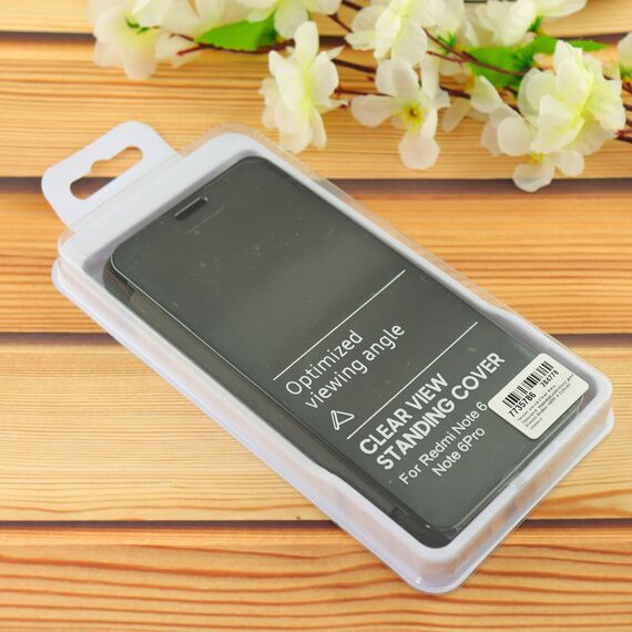 Чехол-книга Clear View /крышка-зеркало,силикон/ для Xiaomi Redmi Note 6 (2018) черный