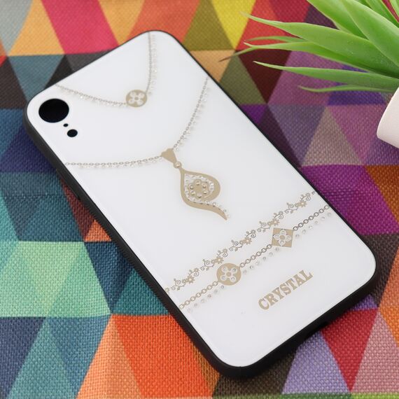 Чехол Оргстекло Стразы для iPhone XR ожерелье белый