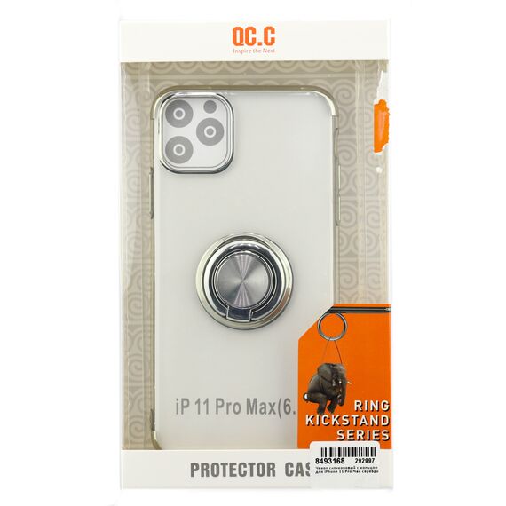 Чехол силиконовый с кольцом для iPhone 11 Pro Max серебро
