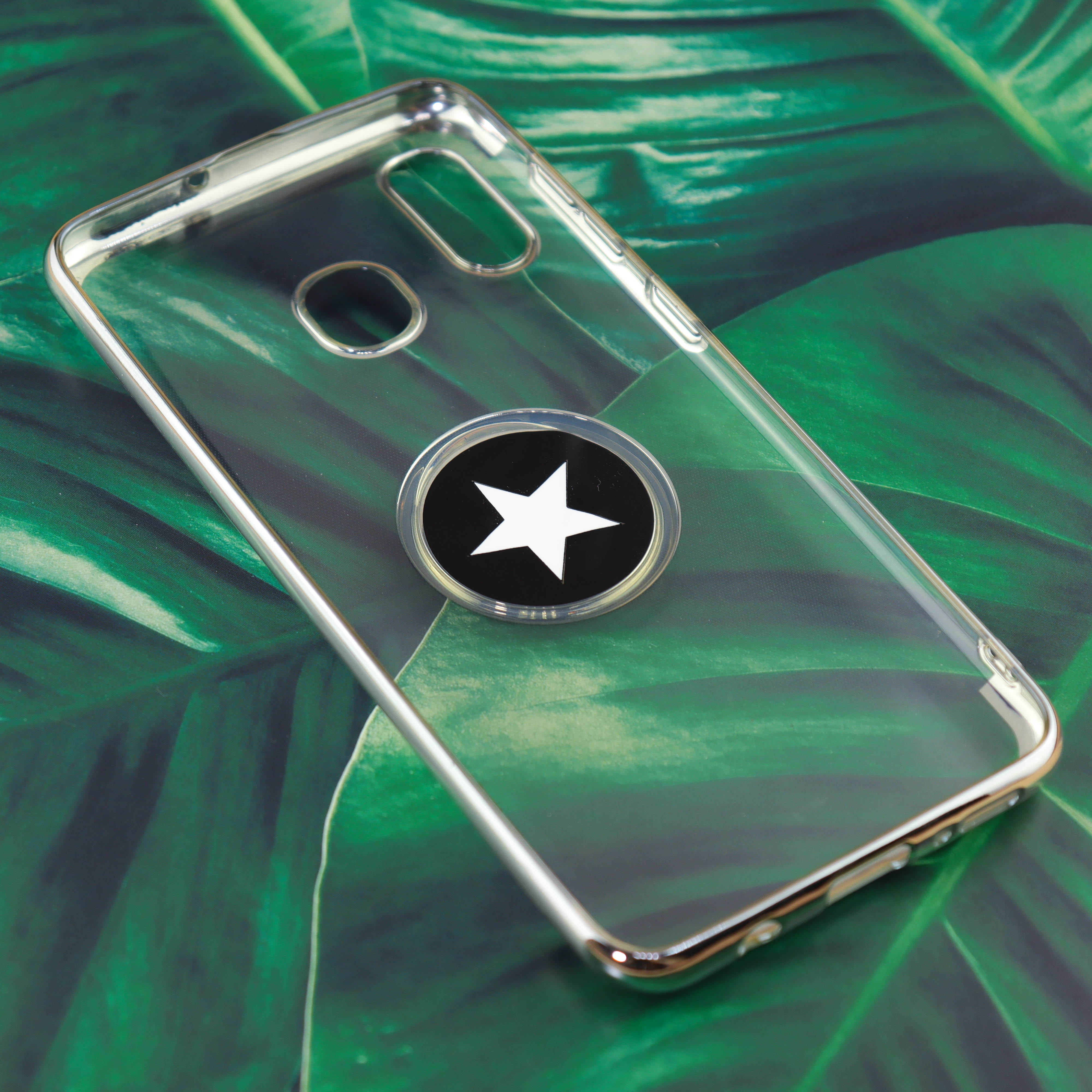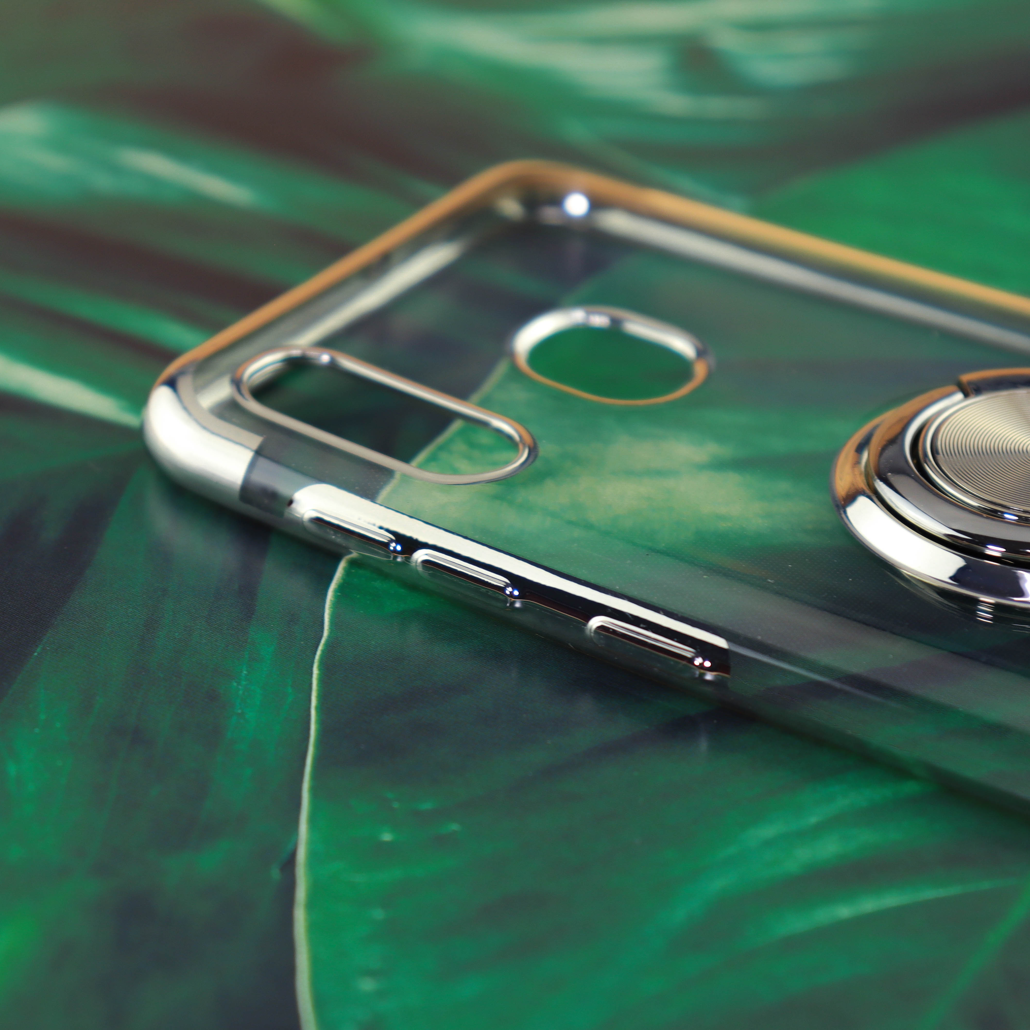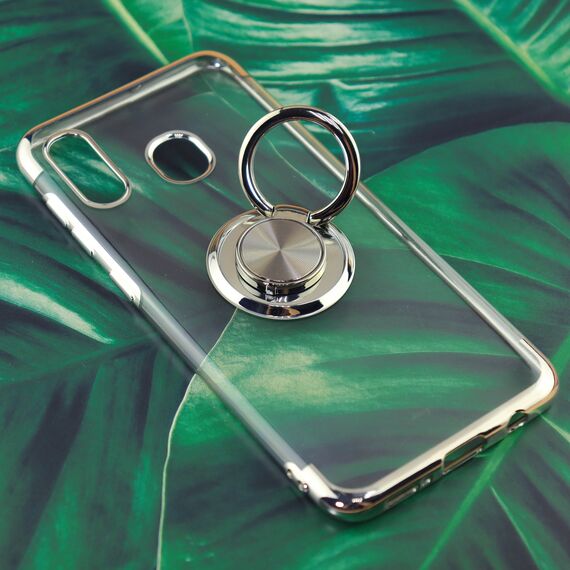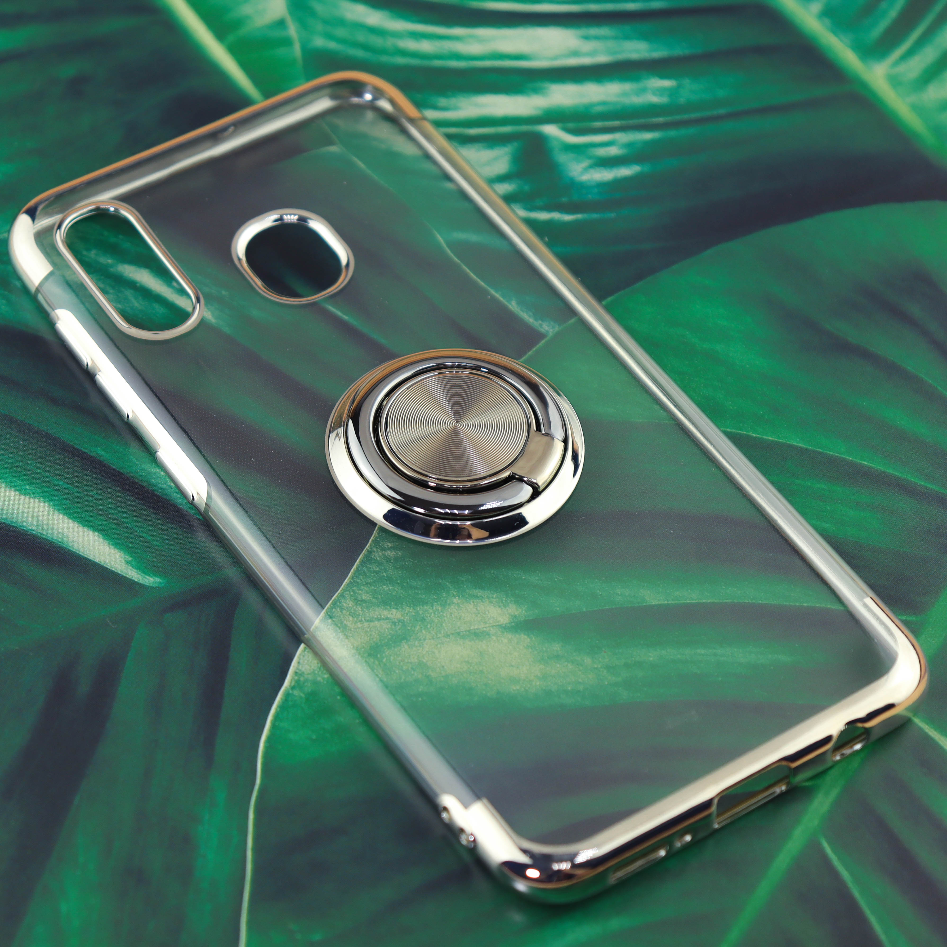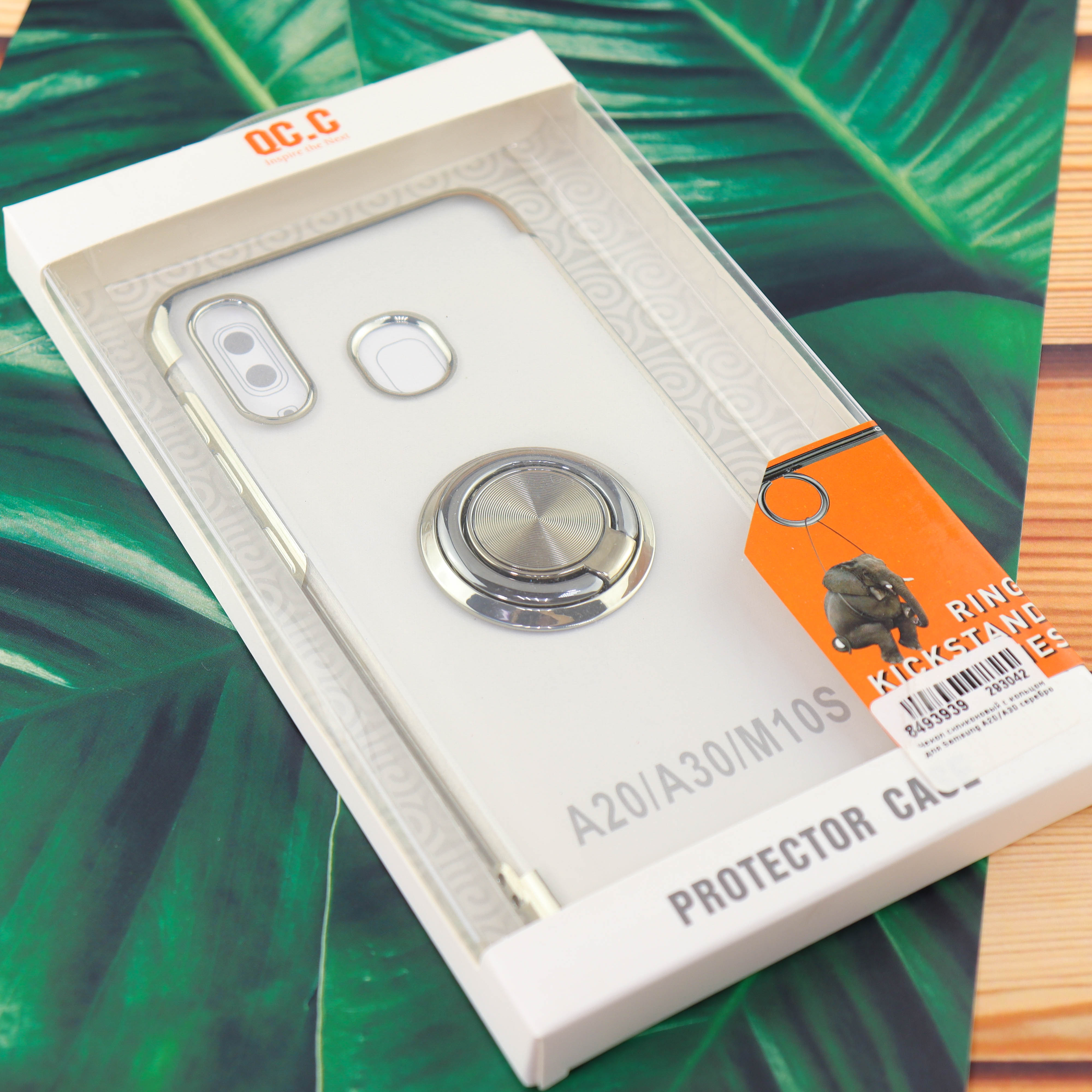 Чехол силиконовый с кольцом для Samsung A20/A30 серебро