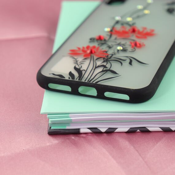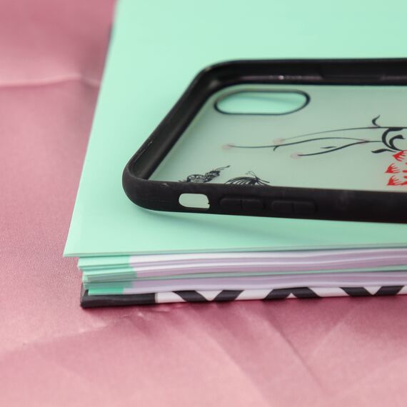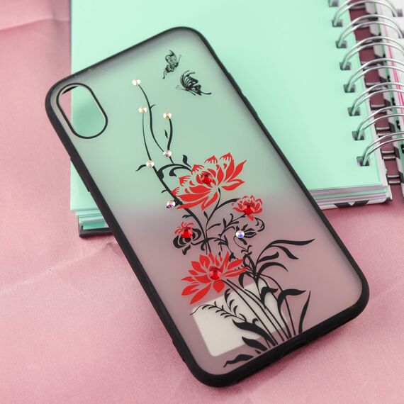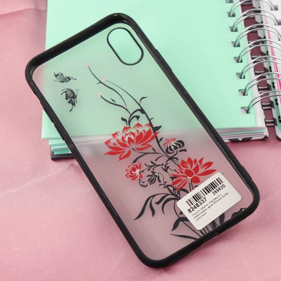 Чехол Цветы матовый с бабочками для iPhone X/XS красный