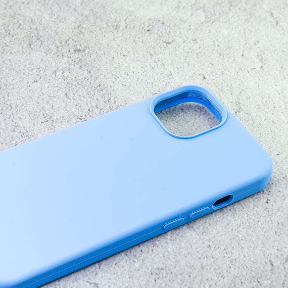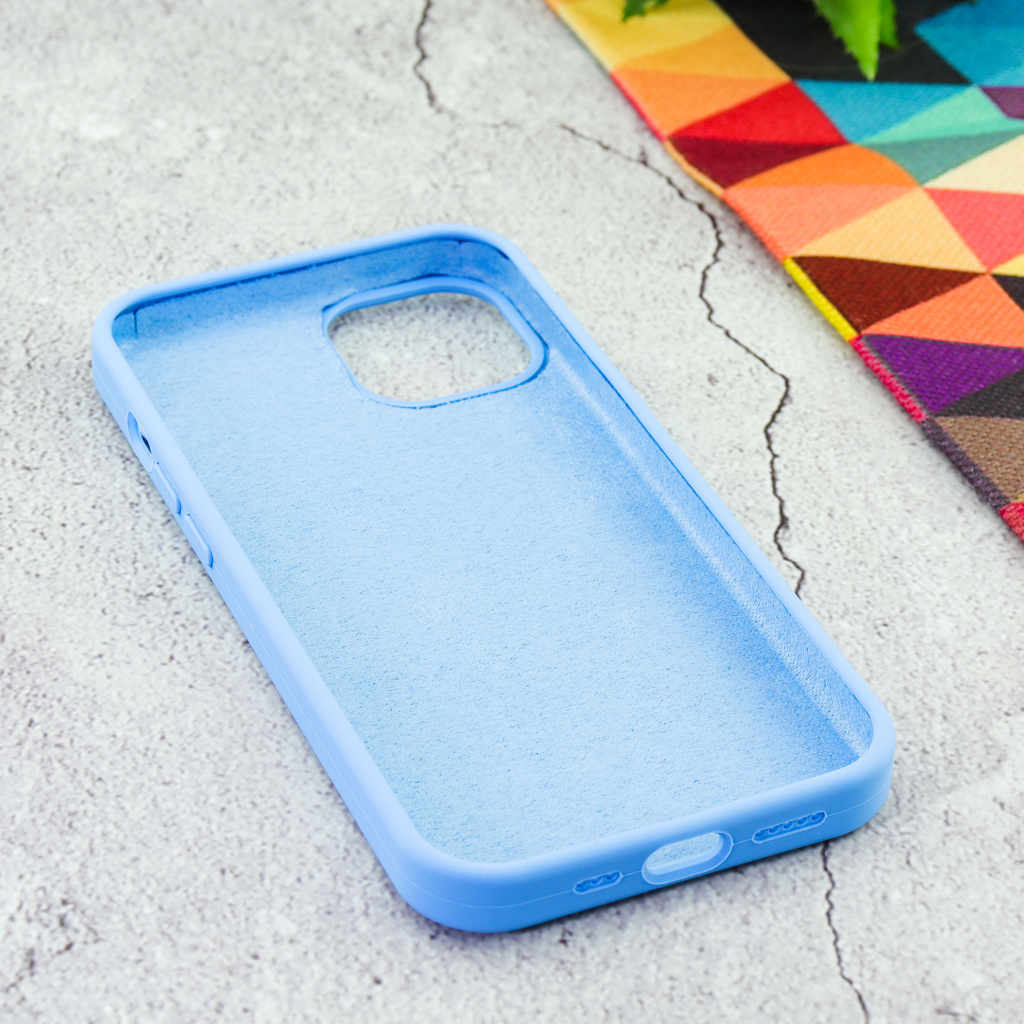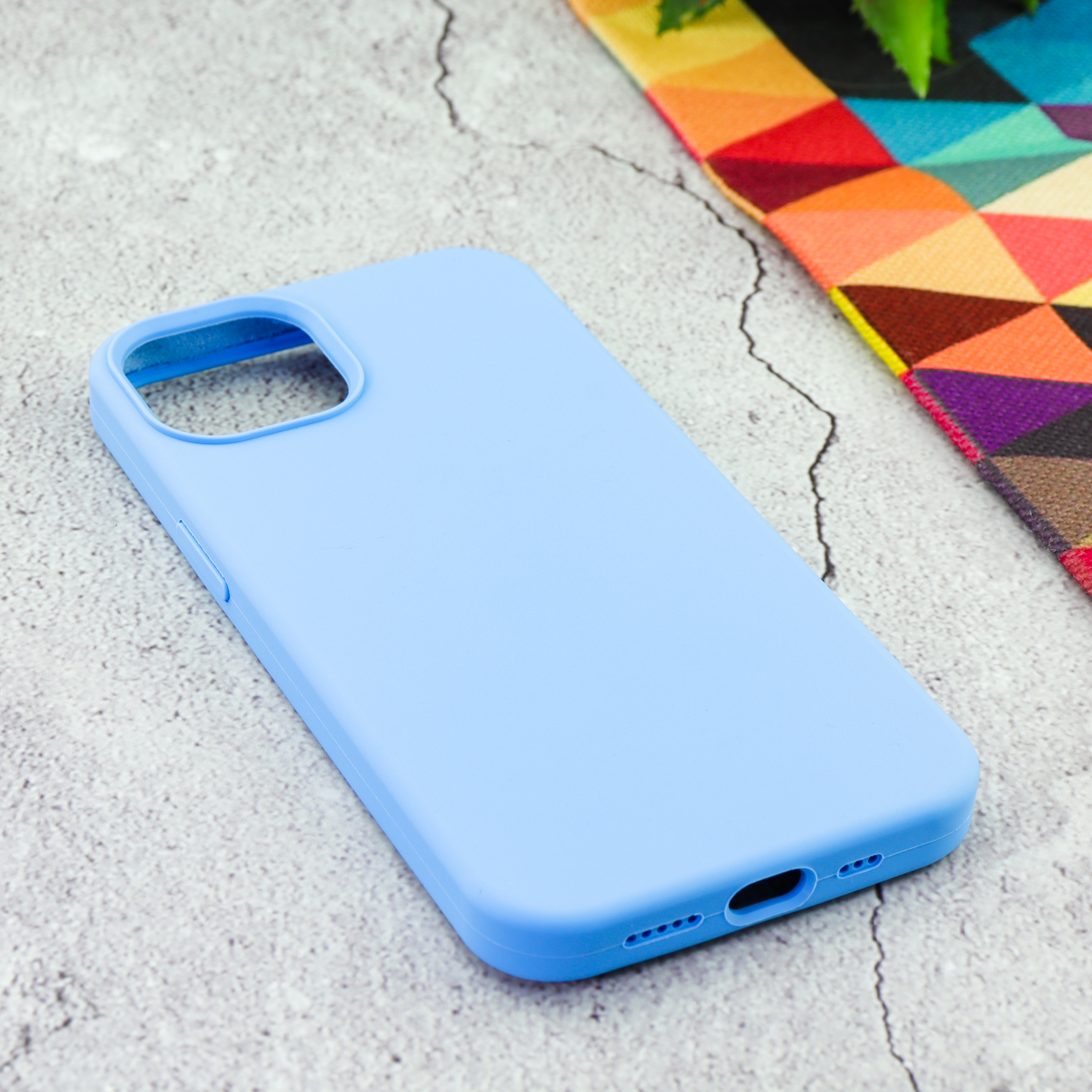 Накладка силиконовая под оригинал "без логотипа" закрытая для iPhone 13 в упаковке, бледно-голубой