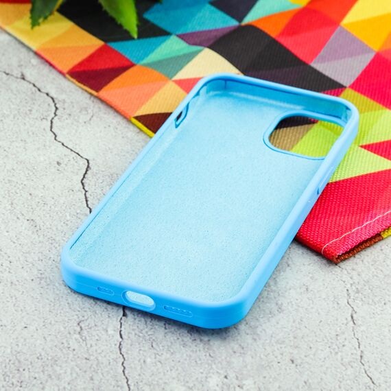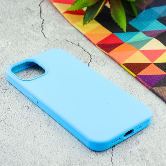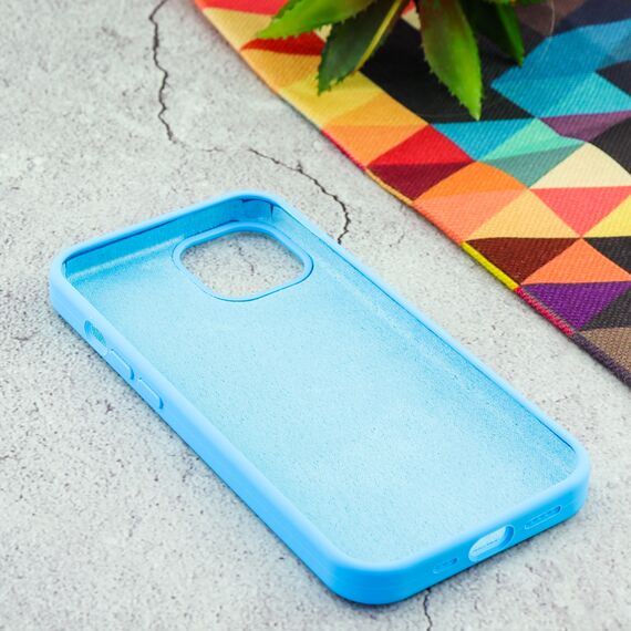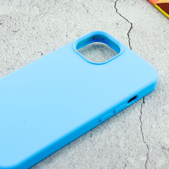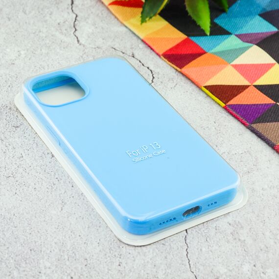 Накладка силиконовая под оригинал "без логотипа" закрытая для iPhone 13 в упаковке, голубой