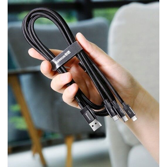 Дата-кабель Baseus Data Faction 3-в-1 (CAMLT-PY01) micro USB 2.0 B (m)+Lightning (m)+Type-C (m) 1.2м чёрный