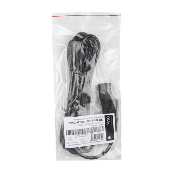 Кабель питания Hyperline PWC-IEC13-IEC14-5.0-BK монитор-компьютер IEC 320 C13 - IEC 320 C14 3x0.75 5м
