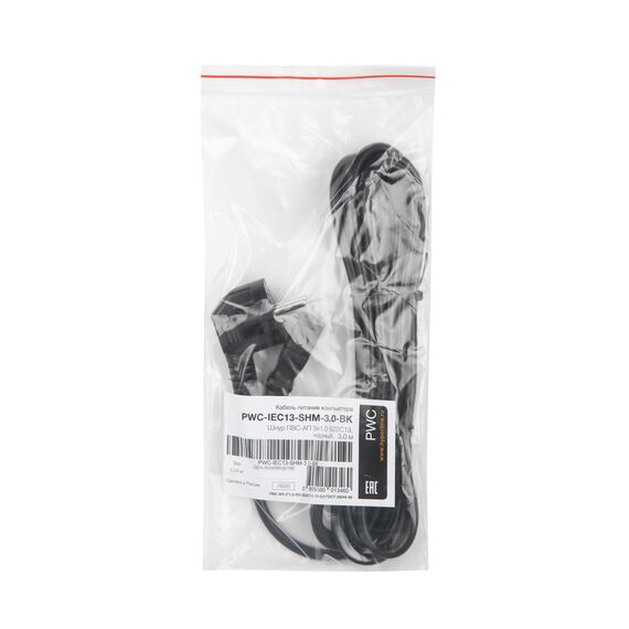 Кабель питания Hyperline PWC-IEC13-SHM-3.0-BK для компьютера Shucko+C13 3x0.75 3м