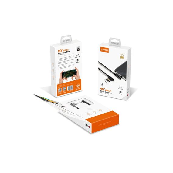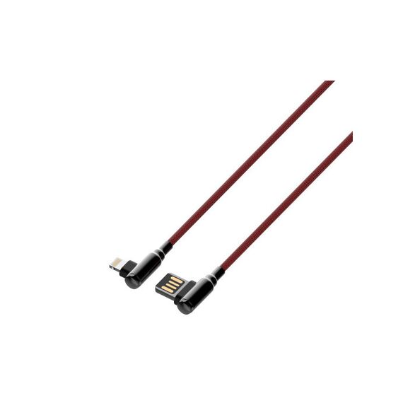 USB кабель LDNIO LD-B4624 LS421/Lightning/1m/2.4A/медь 86 жил/Угловой коннектор/Нейлоновая опл./Red