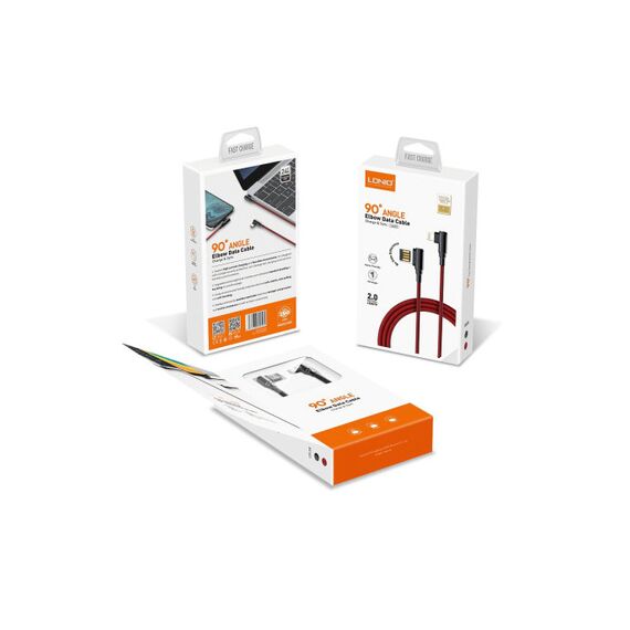 USB кабель LDNIO LD-B4630 LS422/Lightning/2m/2.4A/медь 120 жил/Угловой коннектор/Нейлоновая опл./Red