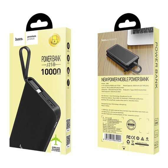 Аккумулятор внешний Hoco J25B 10000 mAh с кабелем Type-C Черный арт.011250