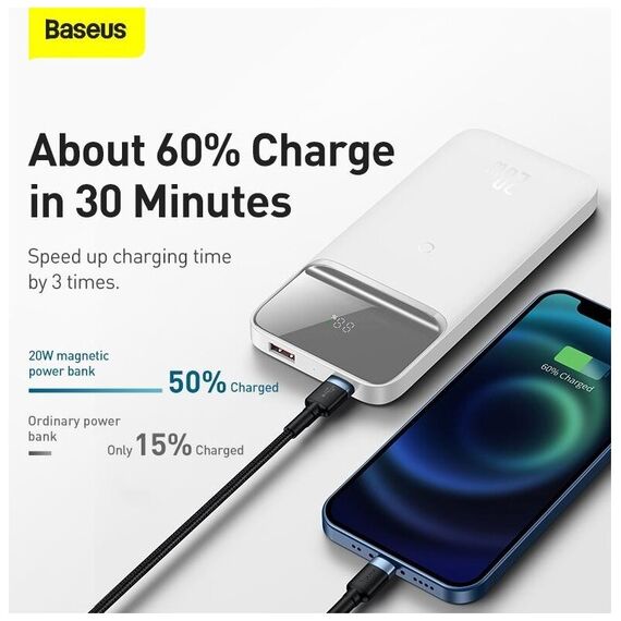 Внешний аккумулятор Baseus PPCX010202 Magnetic Wireless Fast Charging 10000mAh 20W White with Cable USB to Type-C 0.3m