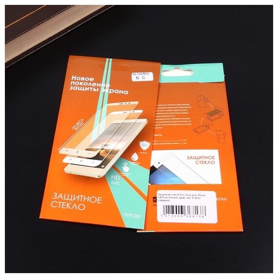Защитное стекло Full Glue для iPhone 6/6S на полный экран Черный арт.010630