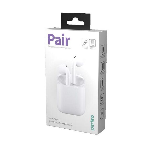 Наушники беспроводные Perfeo TWS PAIR белые автосопряжение, сенсорное управление
