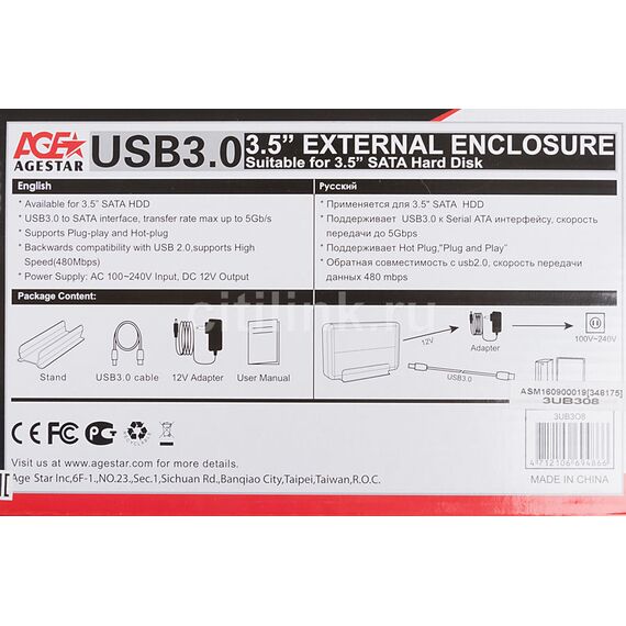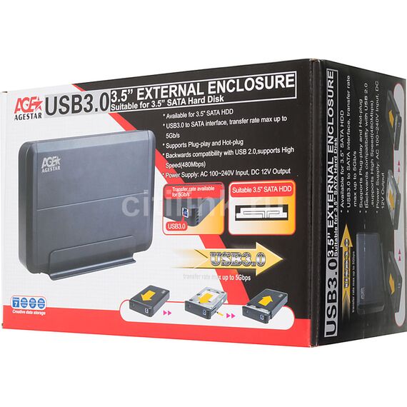 Внешний корпус для HDD AgeStar 3UB3O8 Sata пластик/алюминий черный 3.5"