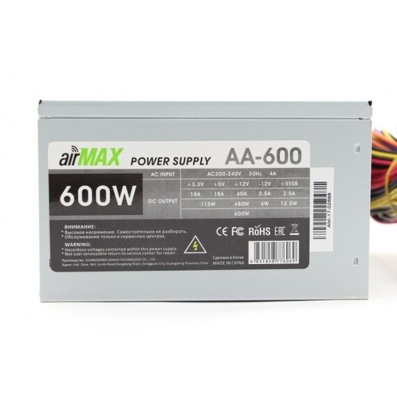 Блок питания AirMax AA-600W ATX 24+4+6пин, 120mm (SCP)(OVP)(OCP)(UVP)ATX 12V v.2.3