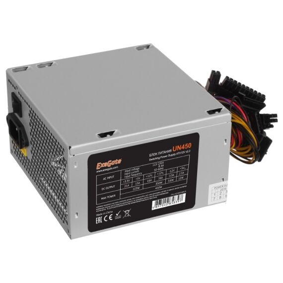 Блок питания ExeGate EX244554RUS-S 450W UN450, ATX, SC, 12cm fan, 24p+4p, 6/8p PCI-E, 3xSATA, 2xIDE, FDD + кабель 220V