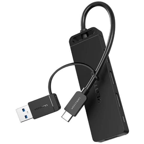 Концентратор Vention CHTBB OTG USB-C+USB 3.0/4xUSB 3.0 порта черный 0.15м